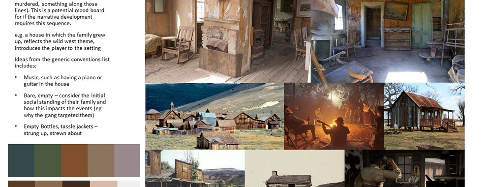 It was then decided that as we were still working out our capabilities, work times, to-do lists etc. that I would develop some mood boards for key areas / ideas for environments across our vertical slice. Below is the mood board document: